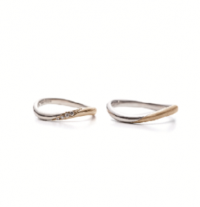 結婚指輪もシンプルな中にも一筋の光が通ったようなダイヤのアクセントと丸みを