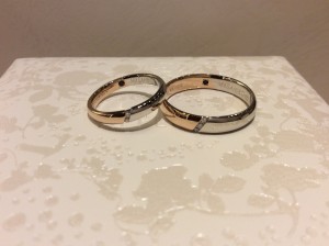 男性様はアレンジをされて、お素材をプラチナとピンクゴールドのコンビに♪