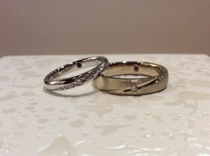 女性様はお素材をプラチナで、男性様はK18シャンパンゴールドで