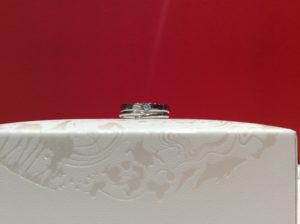 ちらりと輝く青の光遊び心ある大人のご結婚指輪に仕上がりました。