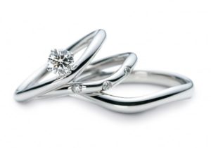 エンゲージリングの重ね方を上下逆さにすると、それぞれ違ったシルエットに!