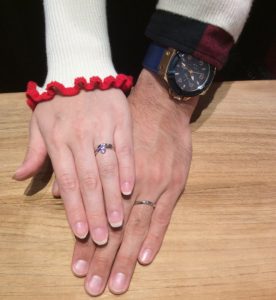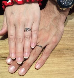 旦那様は中央に【ブルーダイヤモンド】を奥様と同じ留め方で追加する無限大のセミオーダーを利用されました♪