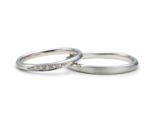 女性様はストレートのデザインで正面にダイヤモンドの輝きが