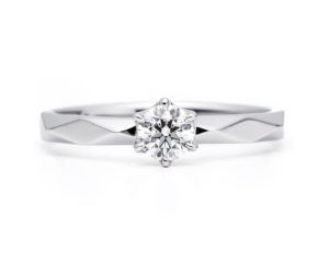 プラチナの光沢感とファセットの輝きが美しいご婚約指輪です。