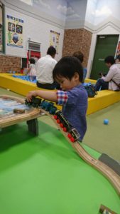 1人遊びをあまりしない息子が1時間ほとんど1人でもくもくと機関車を走らせていました笑