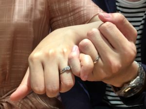 「セットリングにしたので、婚約指輪にさらにキラキラが加わって嬉しかったです。男性のリングも輝き具合を選べたのが良かったです。思った以上の仕上がりに感動しました。写真も撮っていただいて、とても良い記念になりました。いつも丁寧な対応ありがとうございます♡ ゆびわ言葉の”清らかな気持ち”を大切にしたいと思います」