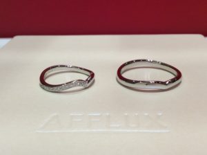 「私達の意見をしっかり聞きながら一緒に悩んでくれて楽しく選べたおかげで、最高の指輪に出会えました。AFFLUXさんで購入して本当に良かったです!安本さんが担当してくれて良かった。ありがとうございました❤」