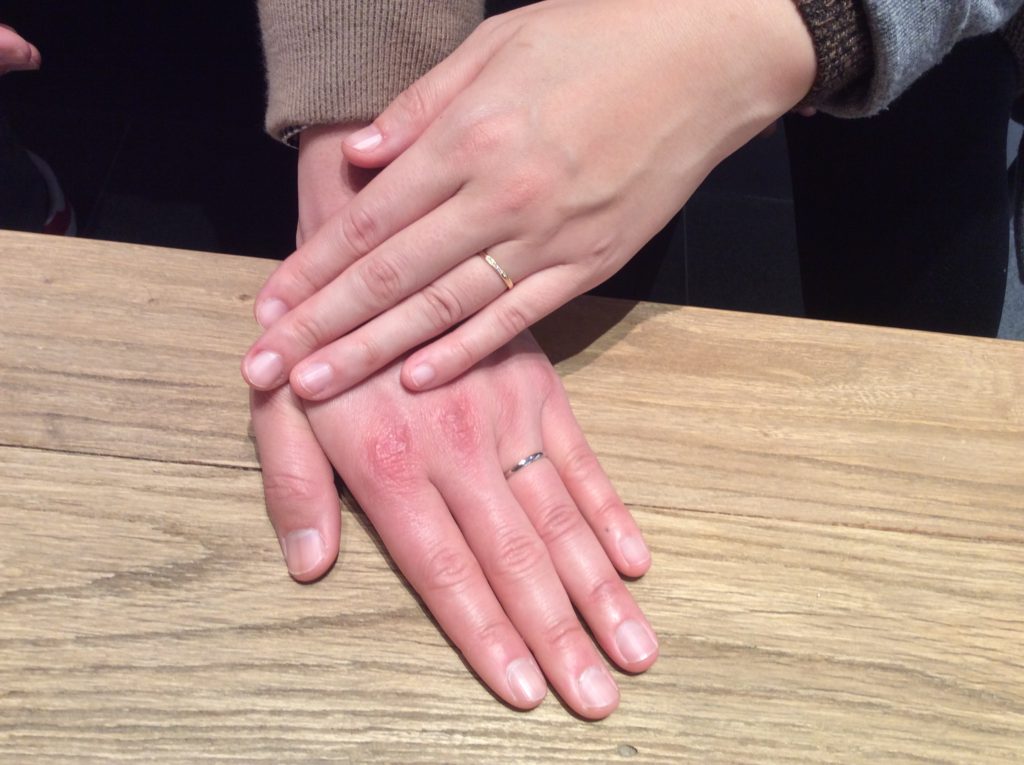 旦那様はプラチナのまま、奥様は華やかさのあるK18イエローゴールドで