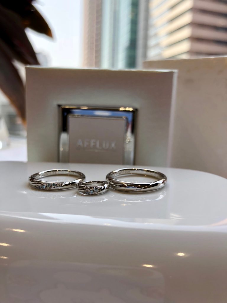 実はご結婚指輪をおふたりでお選び頂いた後、こっそりと旦那様からご依頼頂いて奥様と生まれてくる赤ちゃんへのサプライズプレゼントをご用意されたのです!!すてきー!!!