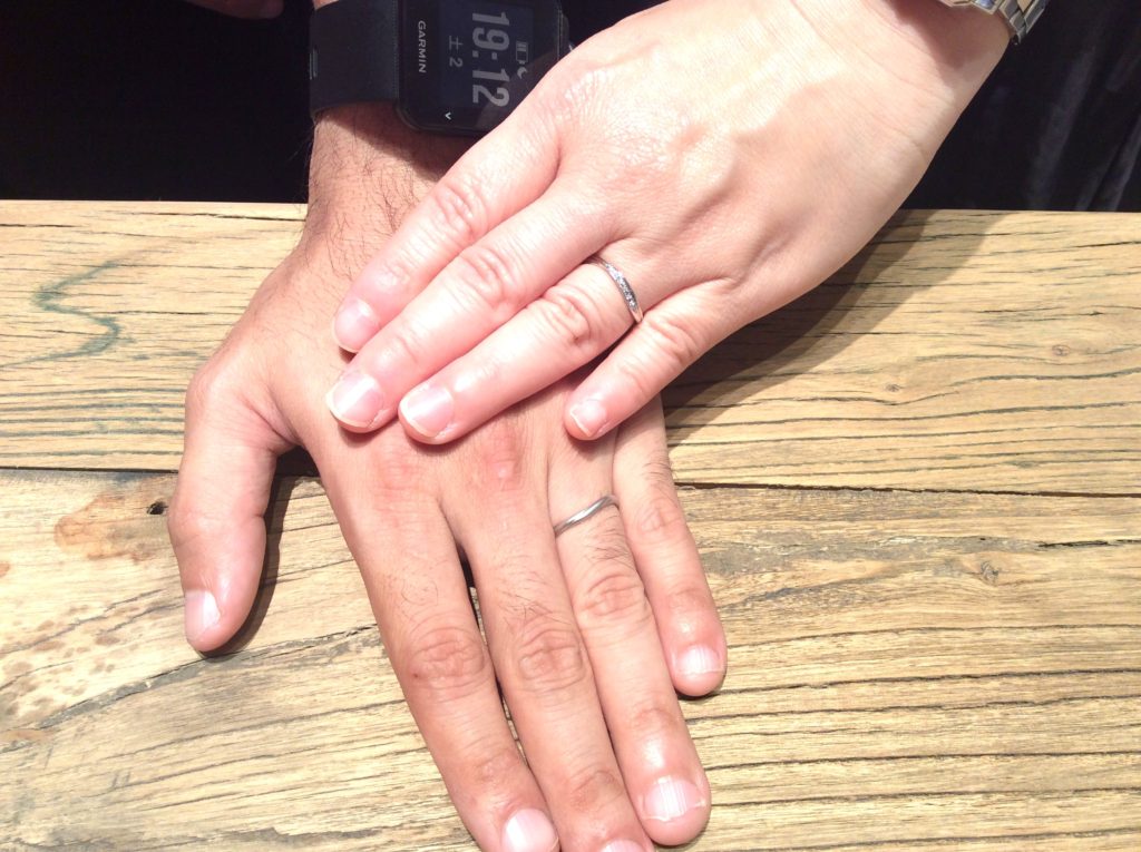 さて、本日は平日のお仕事帰りしか、おふたりのご都合があわずお疲れのところわざわざご来店下さったご夫婦様のご結婚指輪のご紹介です♪