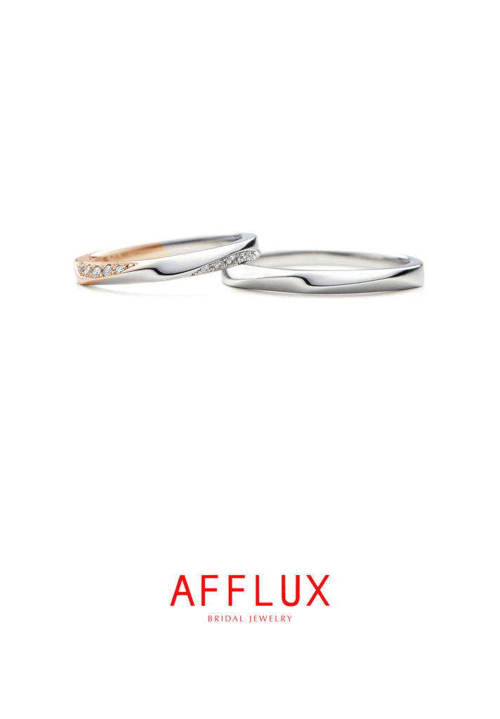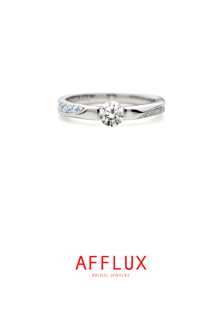 雨の後の晴れ間に架かる虹の橋をイメージしたデザインで、ゆびわ言葉も「ふたりの心と心を繋ぐ虹の架け橋がいつも七色に輝いていますように。」との意味があります。