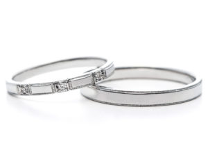 女性様はダイヤモンドを1石に変更され、シックで大人な結婚指輪に仕上がりました。