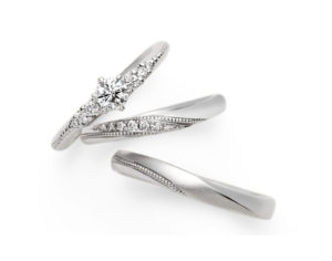 七夕をモチーフにしたデザインで、留まっているダイヤも7石、ゆびわ言葉も7文字、ととっても「7」にこだわった指輪なので7月が記念月のカップル様にはぴったりな指輪なのです。