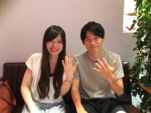 プロポーズ成功後、サイズの調整で奥様を連れてご来店。