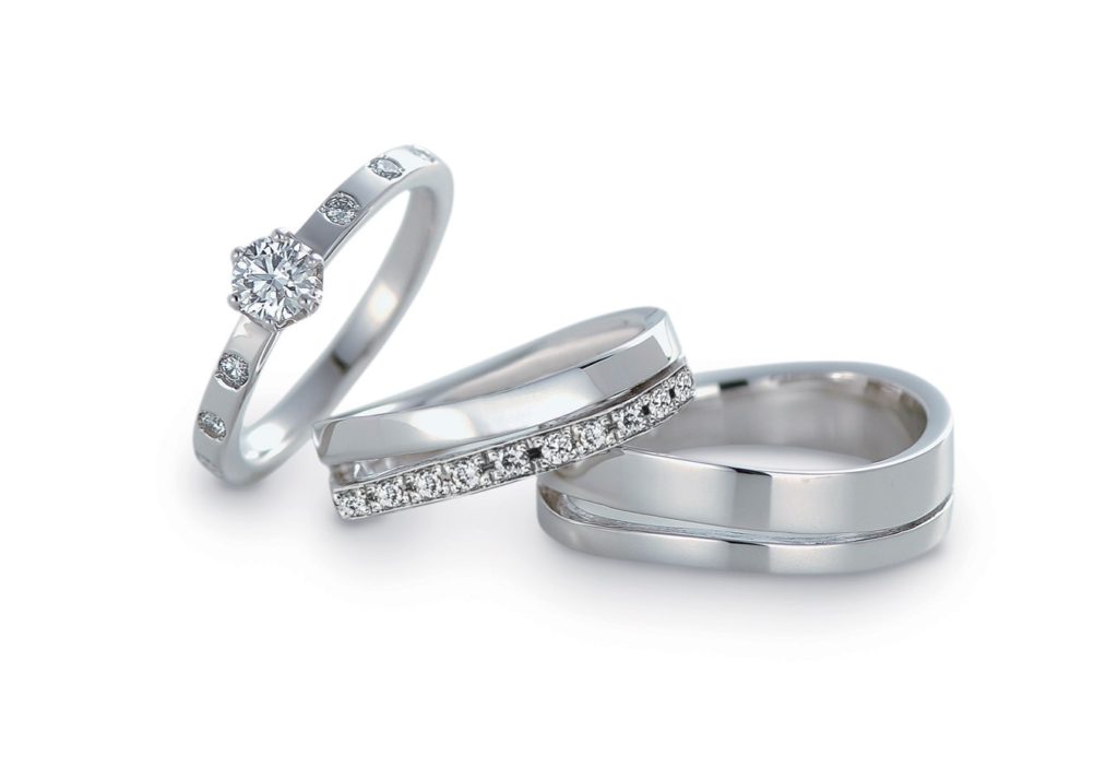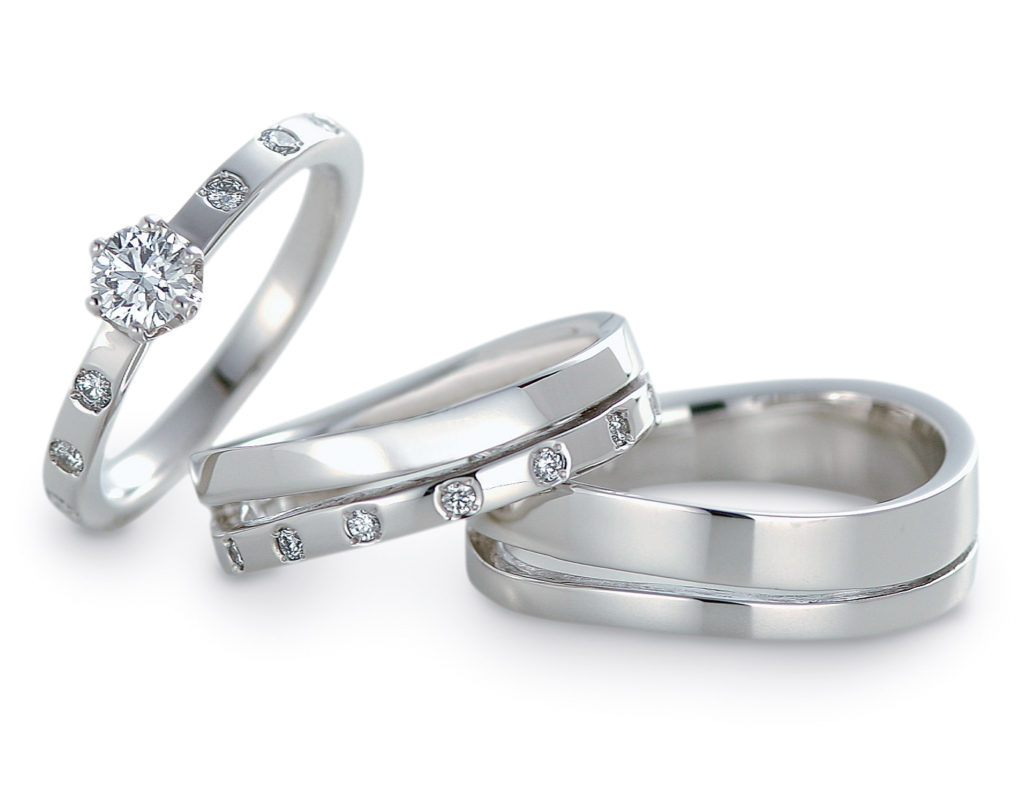 ダイヤモンドの輝きとプラチナの光沢が贅沢な結婚指輪に仕上がります。
