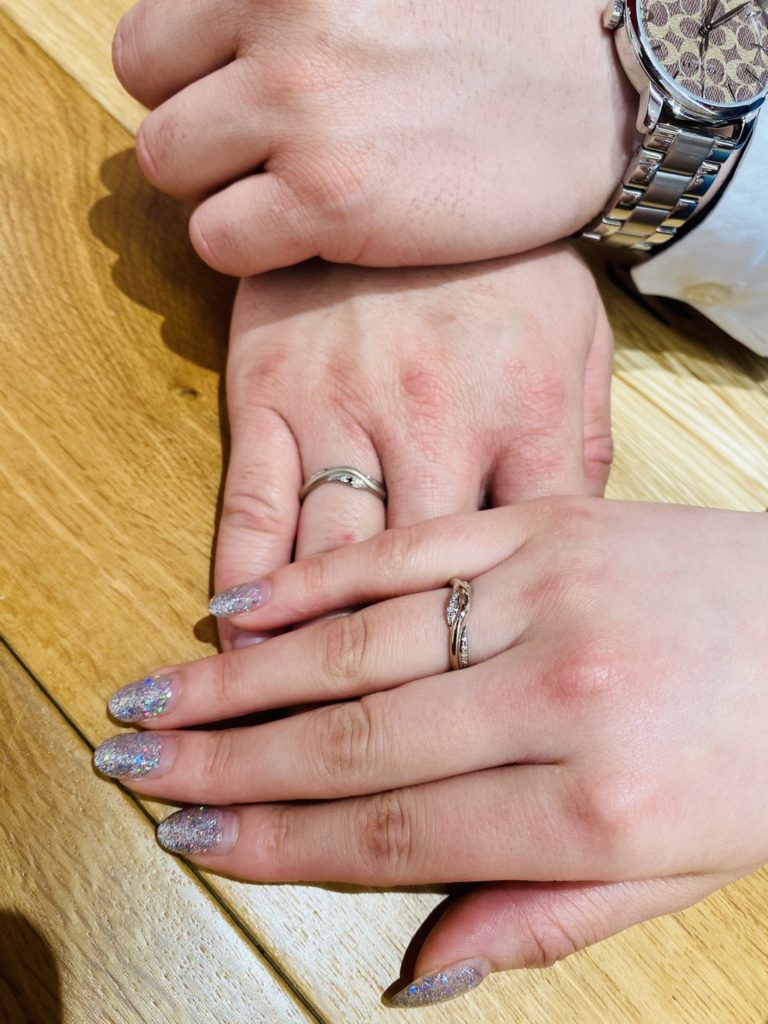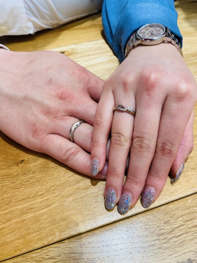 奥様はAFFLUXのsuzuran(ゆびわ言葉®幸福のおとずれ)をベースに、幅を細くしてお造り頂きました☺