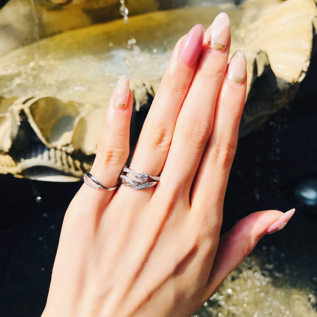 煌めく波の花をモチーフにしたブライダルリング💗