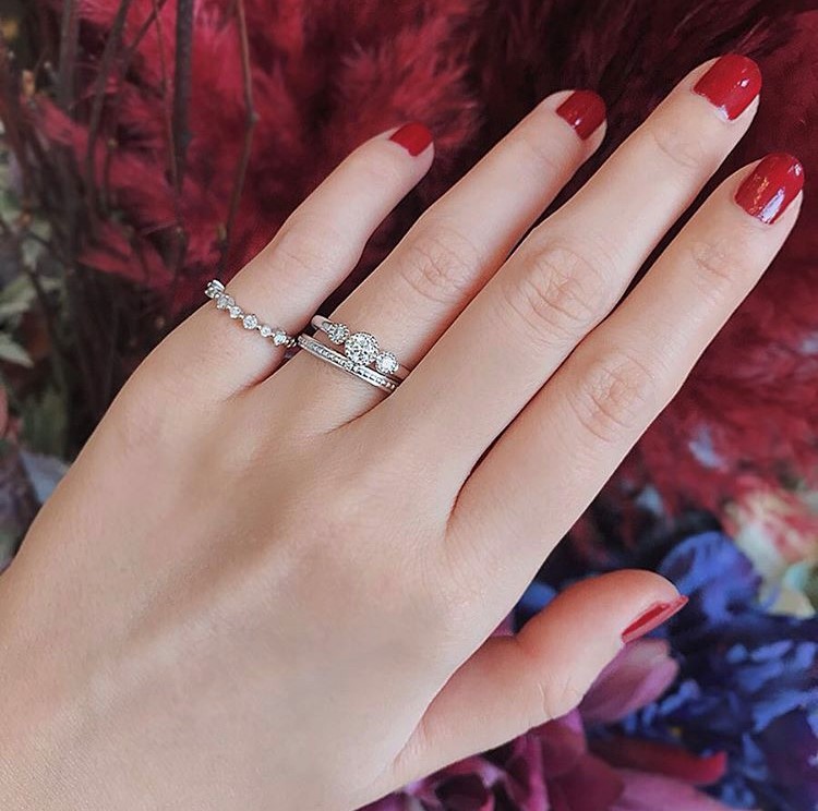 アンティークながら繊細なデザイン性がより手元を美しく見せてくれるブライダルリングです。