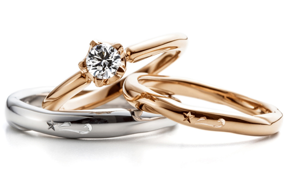 夕方も日の入りが早くなって5時頃には晴れていると綺麗な夕暮れ模様を見ることが出来ます。特に冬場は綺麗に金星が光ってますね。夕暮れに綺麗な一番星を見つけたそんな幸運を表現する指輪が「first star~ラッキー~」です。