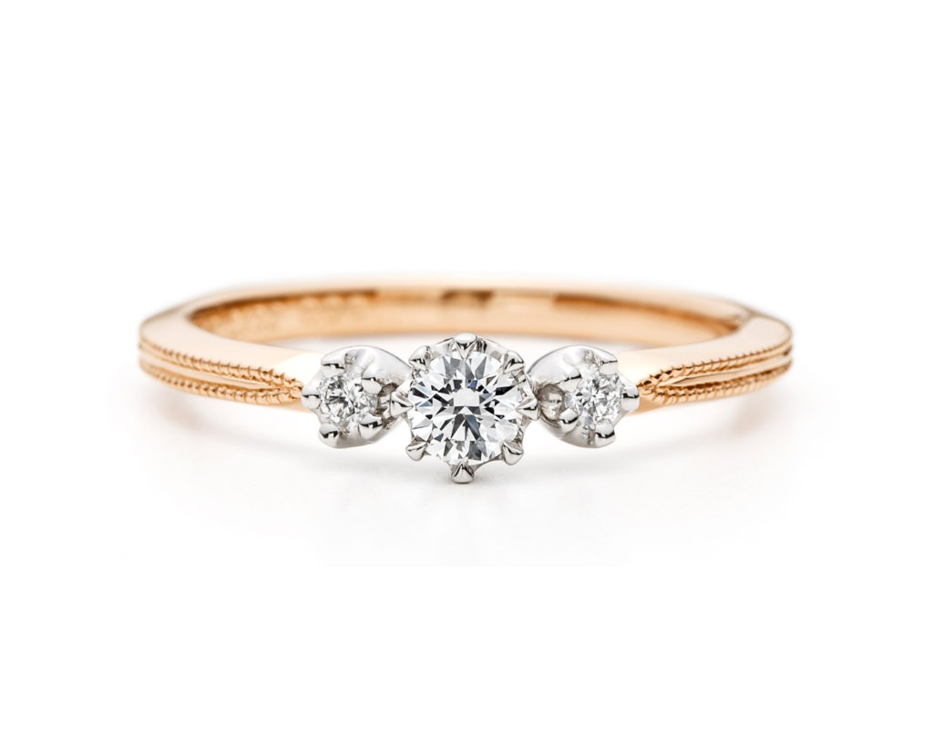 恋のケーキをモチーフに甘い恋心をイメージしデザインされた指輪でゆびわ言葉には『運命の恋に落ちたふたりがいつまでも恋人同士のような関係でいられますように。』という想いが込められています。