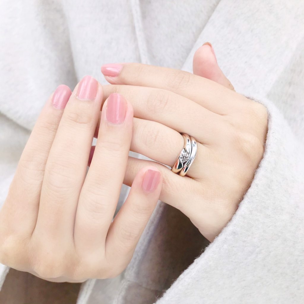 滑らかなウェーブと艶感が魅力的なブライダルリング