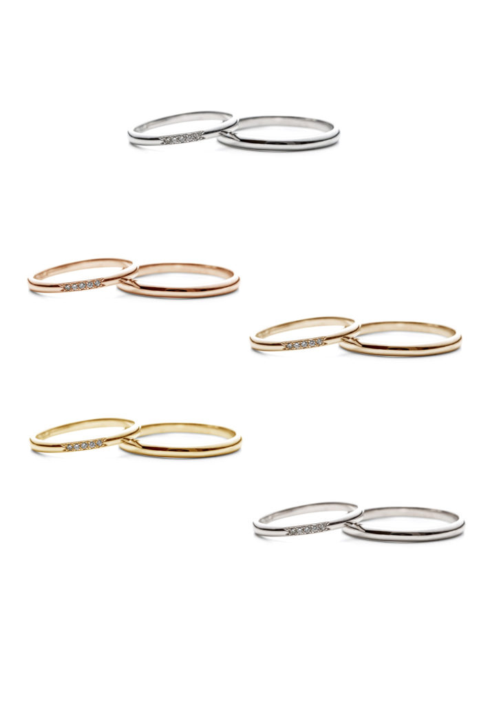 デザインはこの様に細身でシンプルですが、ダイヤの留め方がリボンの様に可愛く口角を表しております。ダイヤ増やしても可愛いですよ。