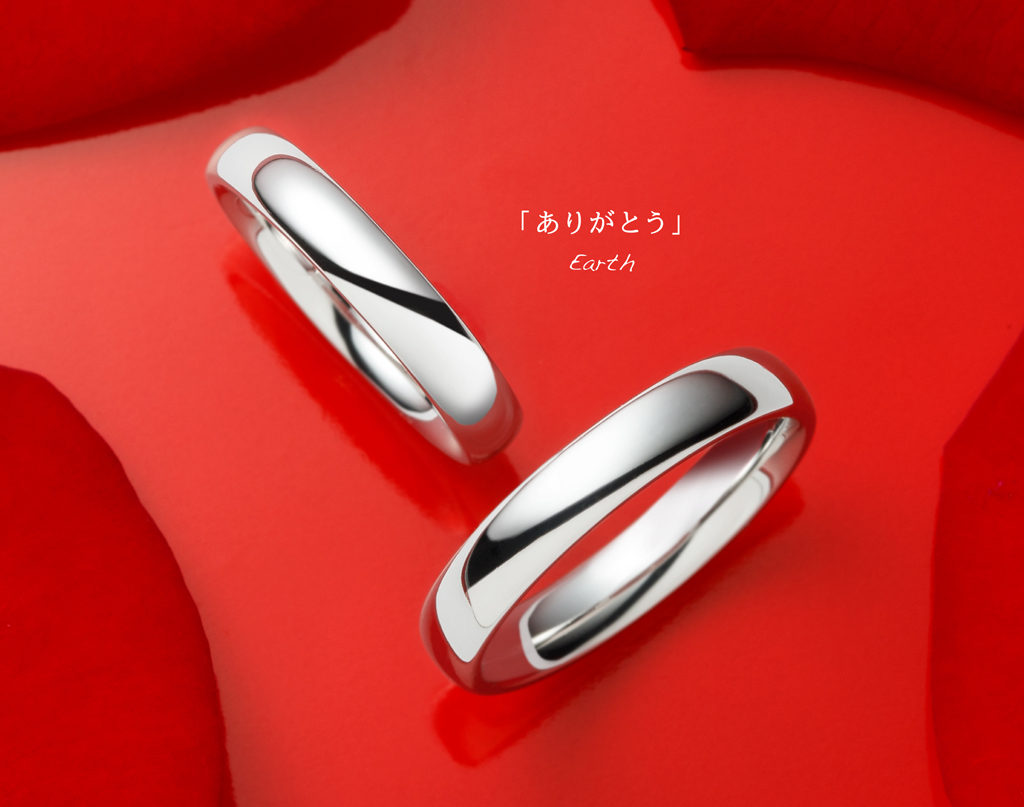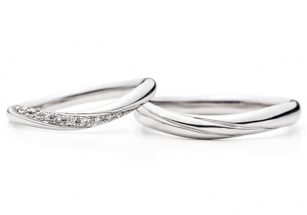マリッジリングはどちらも緩やかなU字ラインで、穏やかな水の流れを感じます。