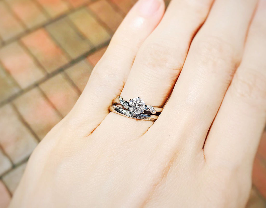 結婚指輪は婚約指輪とはまた違った葉のモチーフです。