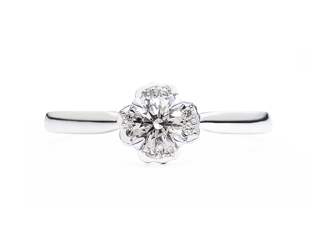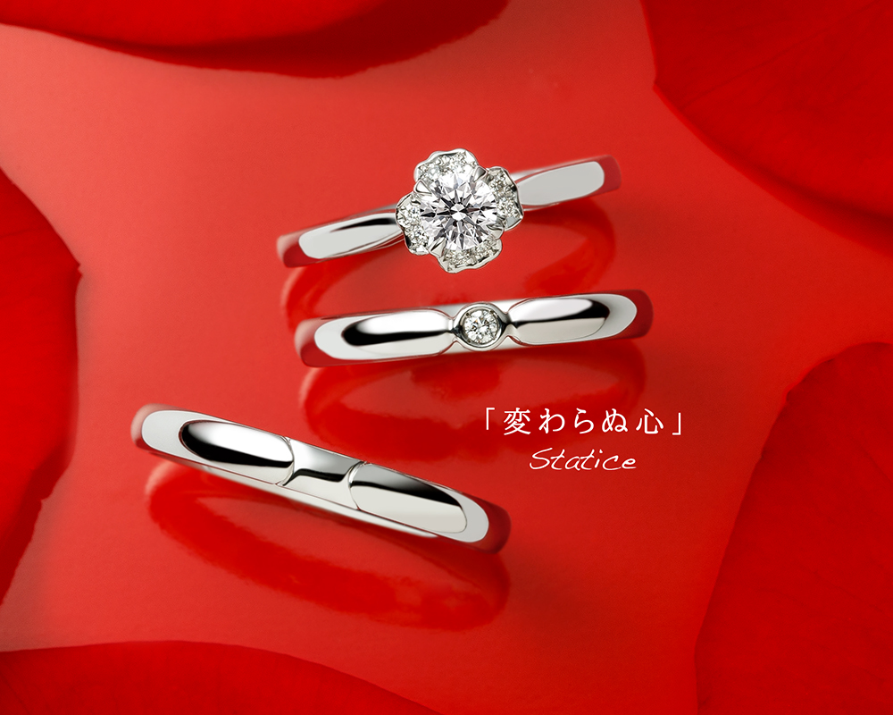 婚約指輪は、スターチスの萼(がく)を表現しています。