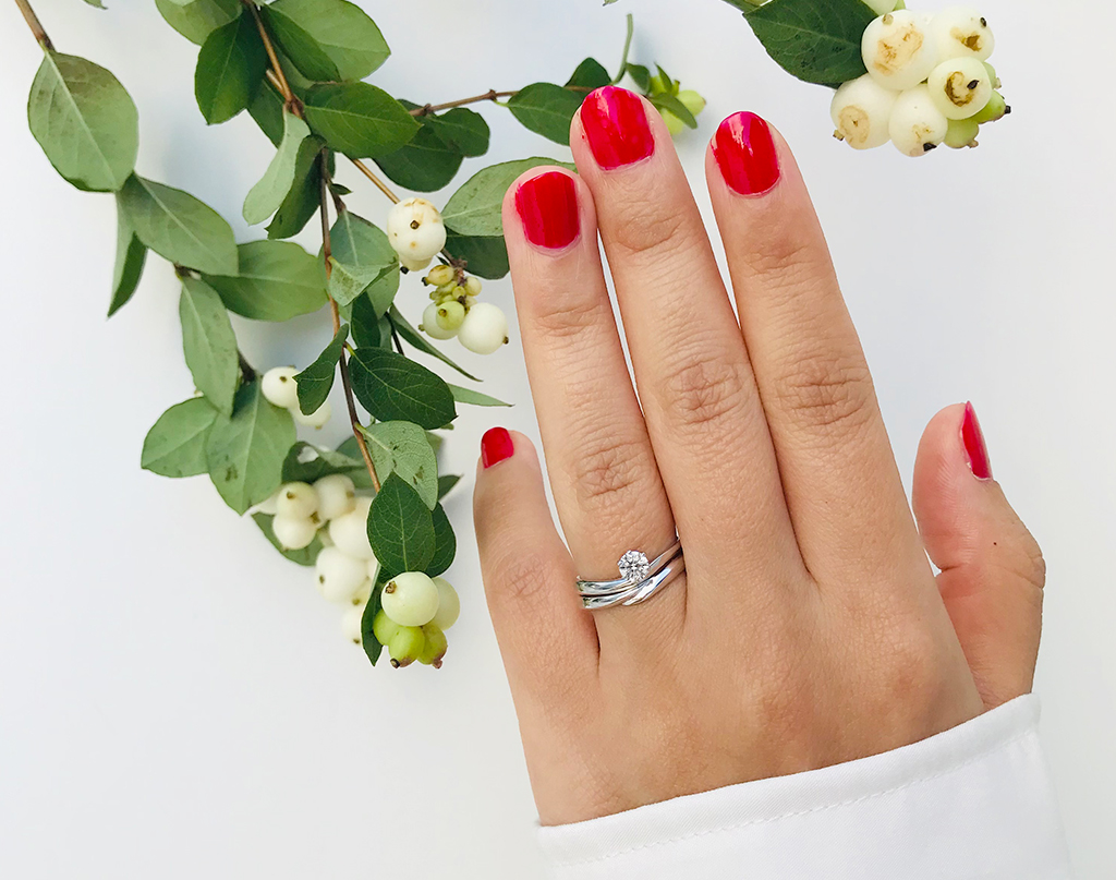 リング全体の落ち着いた流れが、ダイヤモンドの洗練された美しさを引き立たせてくれます。