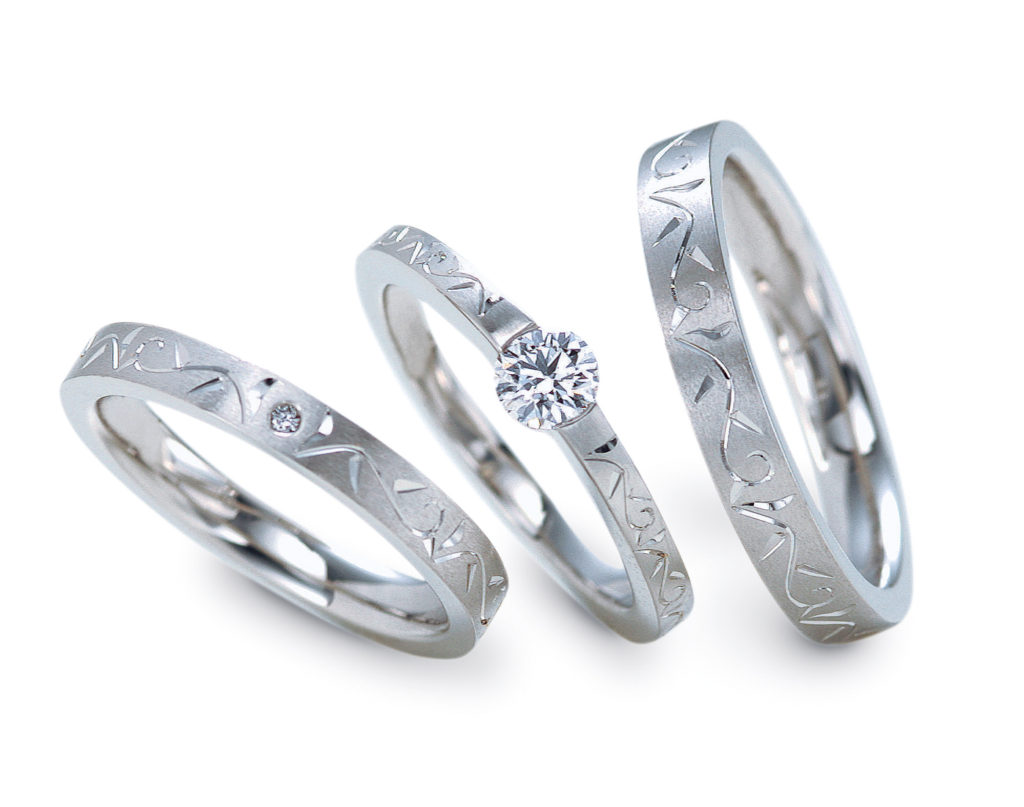 結婚指輪(マリッジリング)は緩やかなS字カーブで、バックハグをされているようなフォルムです。