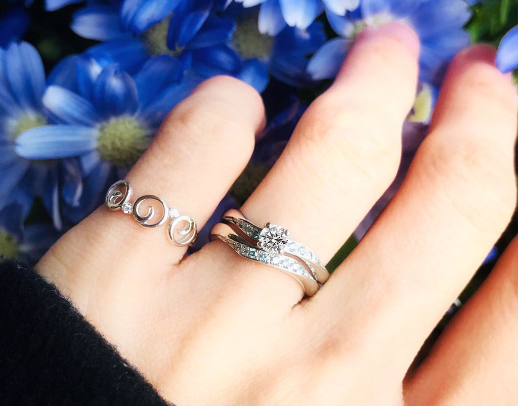 写真で見ると「めっちゃうねってない!?」とびっくりされる方もおられますが、実際着けて見て頂くと、あら不思議。薬指に自然と馴染みやすいのです。