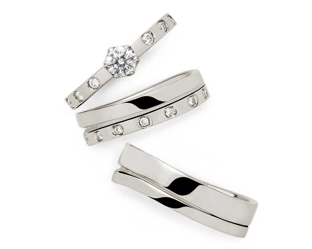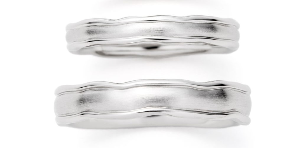プラチナの丈夫さをうまく活用しつつ柔らかな動きがデザイン性を感じさせる結婚指輪に仕上がっています。