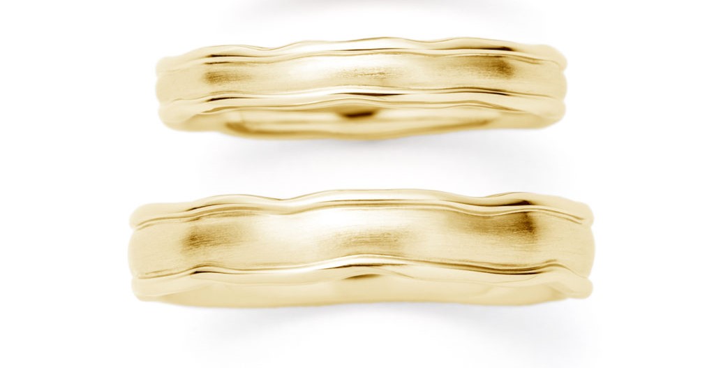 何よりも不規則に波打つ立体的な動きが、より温もりを感じる優しいシルエットに。お手元を嫌味なく美しく見せてくれる結婚指輪に昇華しています。
