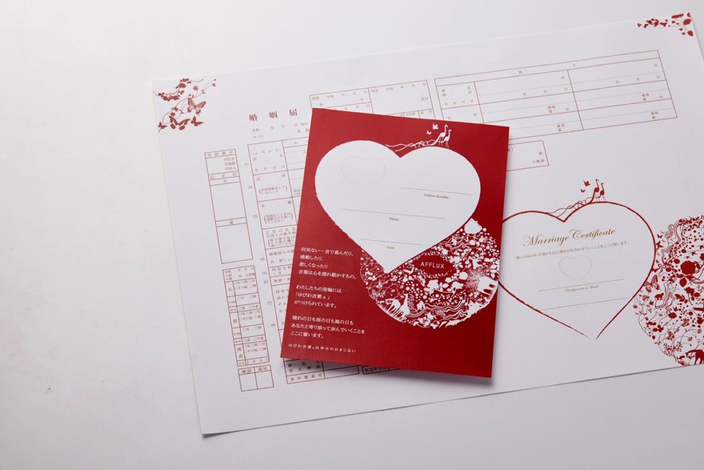 その場で記入と捺印を押して愛を誓って頂きます。ご自宅でも簡単に飾っていただけるようにコンパクトなA5サイズをご準備しております。