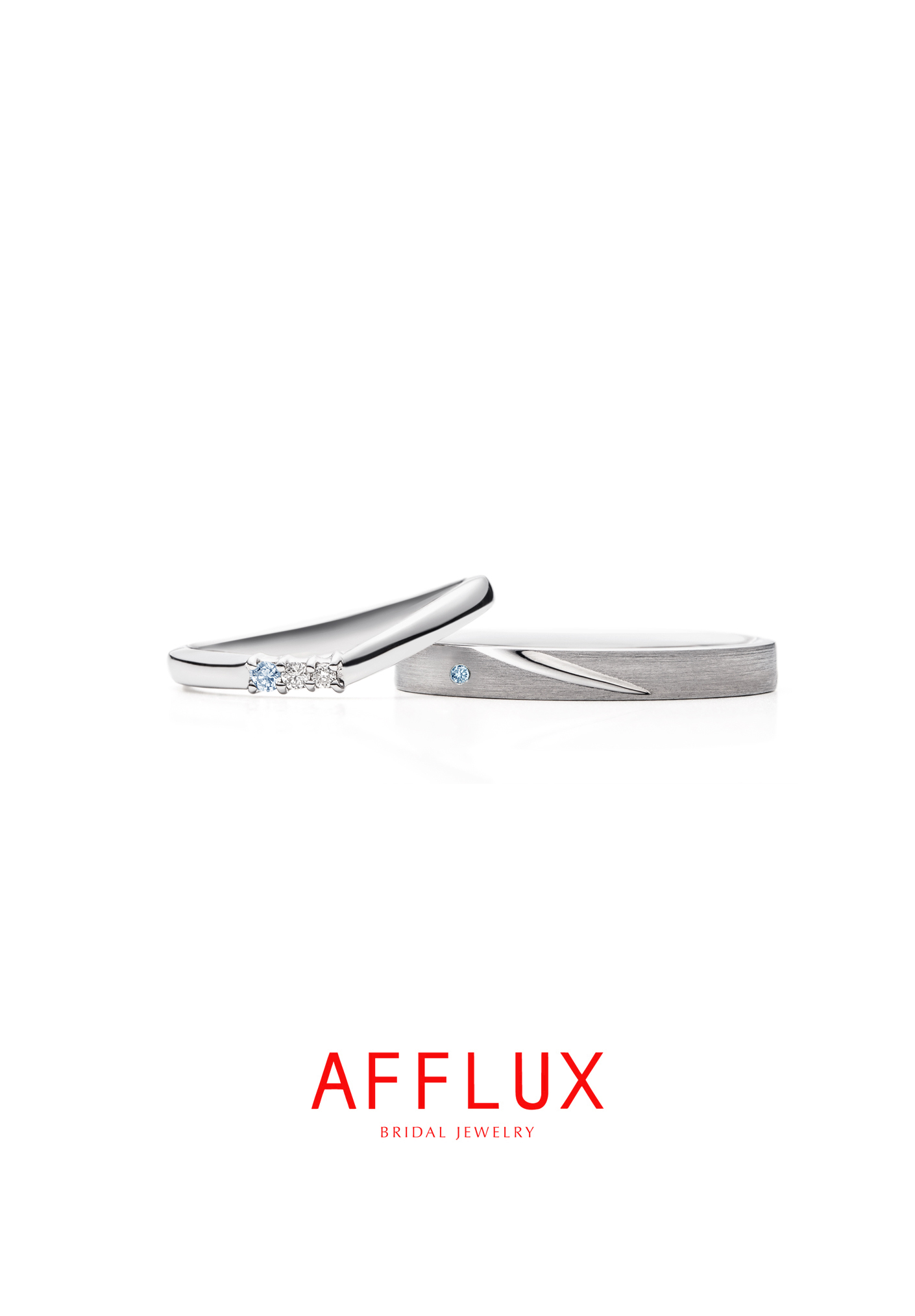 「デザインが良かったためAFFLUXに決めました。ダイヤモンドのひとつをアイスブルーダイヤに変更して、2人だけの指輪を考えることもでき、うれしかったです。仕上がりもとても満足しています」