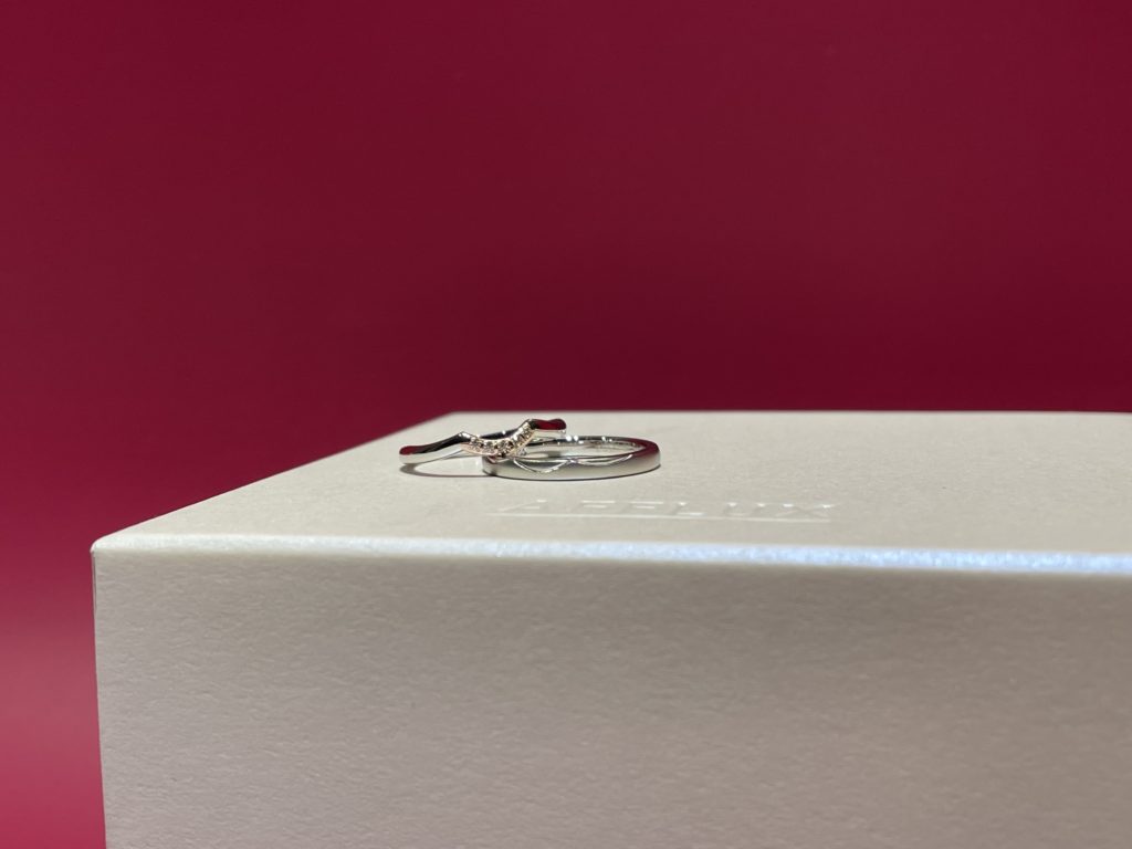 先にお持ちだった2本の指輪との重ね着けが最大のこだわりポイントでした。