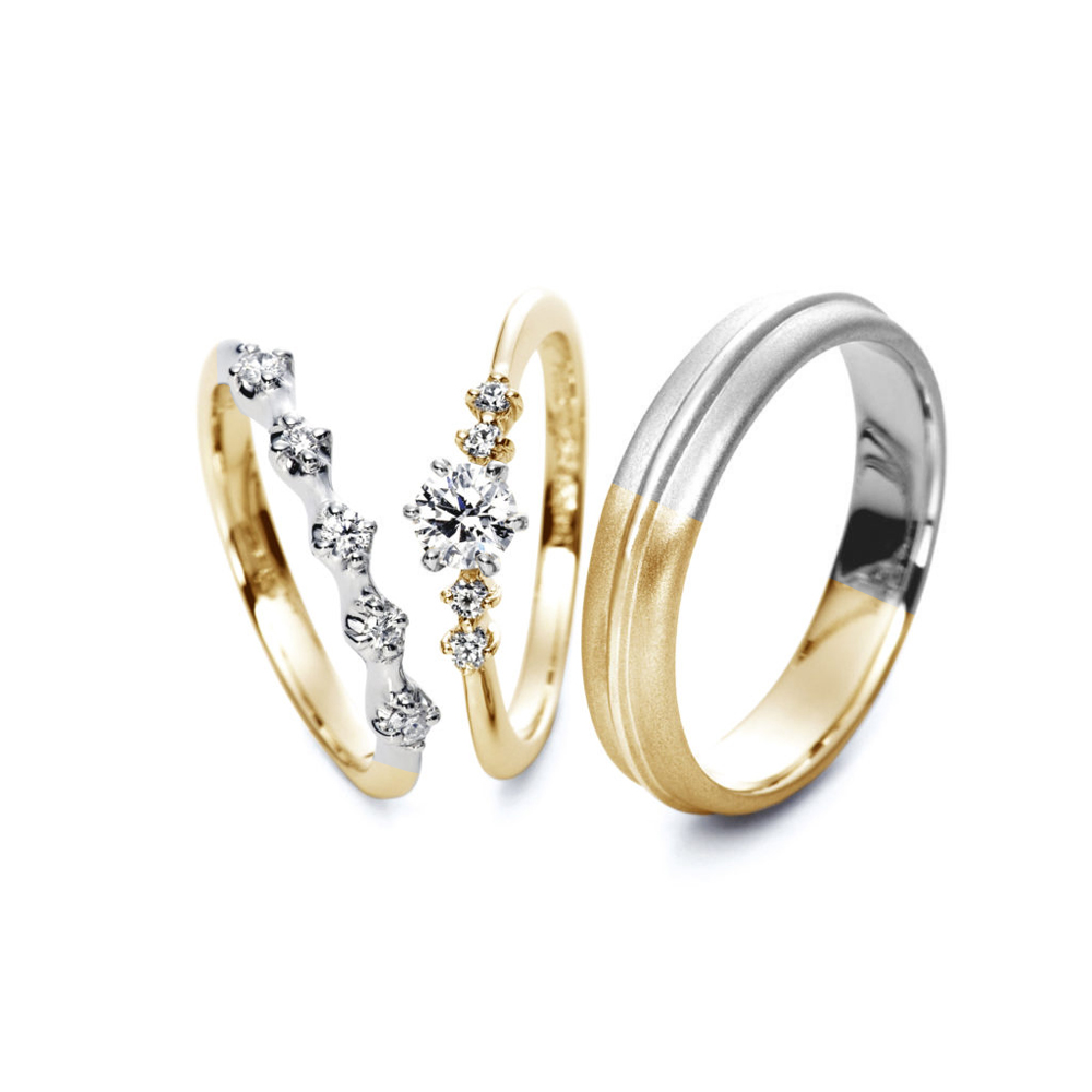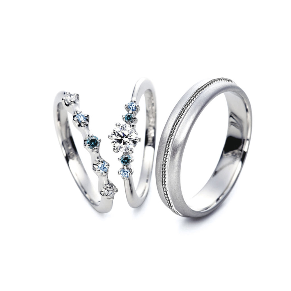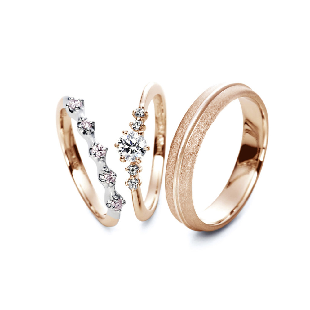 エンゲージリングとマリッジリングを重ねてつけるととても可愛いです。