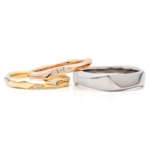 クラシカルな印象のK18ゴールド(イエローゴールド)、柔らかみのある色合いが魅力のK18 ピンクゴールド、温かみのある輝きをもったK18ホワイトゴールド、ニュアンスカラーが美しいK18シャンパンゴールド。カラーによって表情が大きく変化するため、一つ一つを手に取りながら悩む時間も、おふたりにとって楽しい時間となるでしょう。