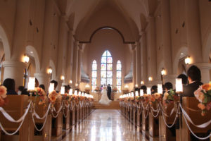 結婚式というと、自然と浮かんでくるバージンロードの景色。新郎新婦や両家のご家族だけでなく、列席者を含めた会場全体が幸せと感動に包まれる、結婚式の素敵なワンシーンです。