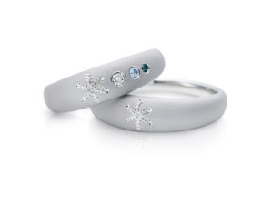 では手頃な価格のブライダルジュエリーに使われている「ブルーダイヤ」は何なのかというと、カラーレスダイヤモンドやブラウン系のダイヤモンドに対し、処理(トリートメント)が施されたダイヤモンドを用いています。