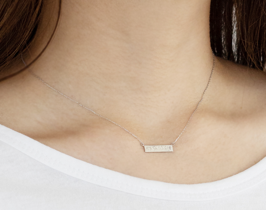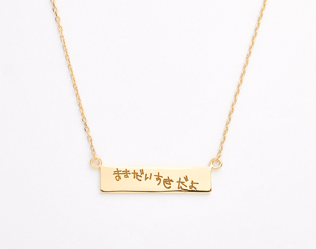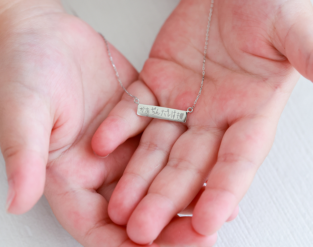 おてがみネックレスは、手書きのメッセージをレーザー刻 印することができます。「今」しか書けない子供の記録を 残しませんか。