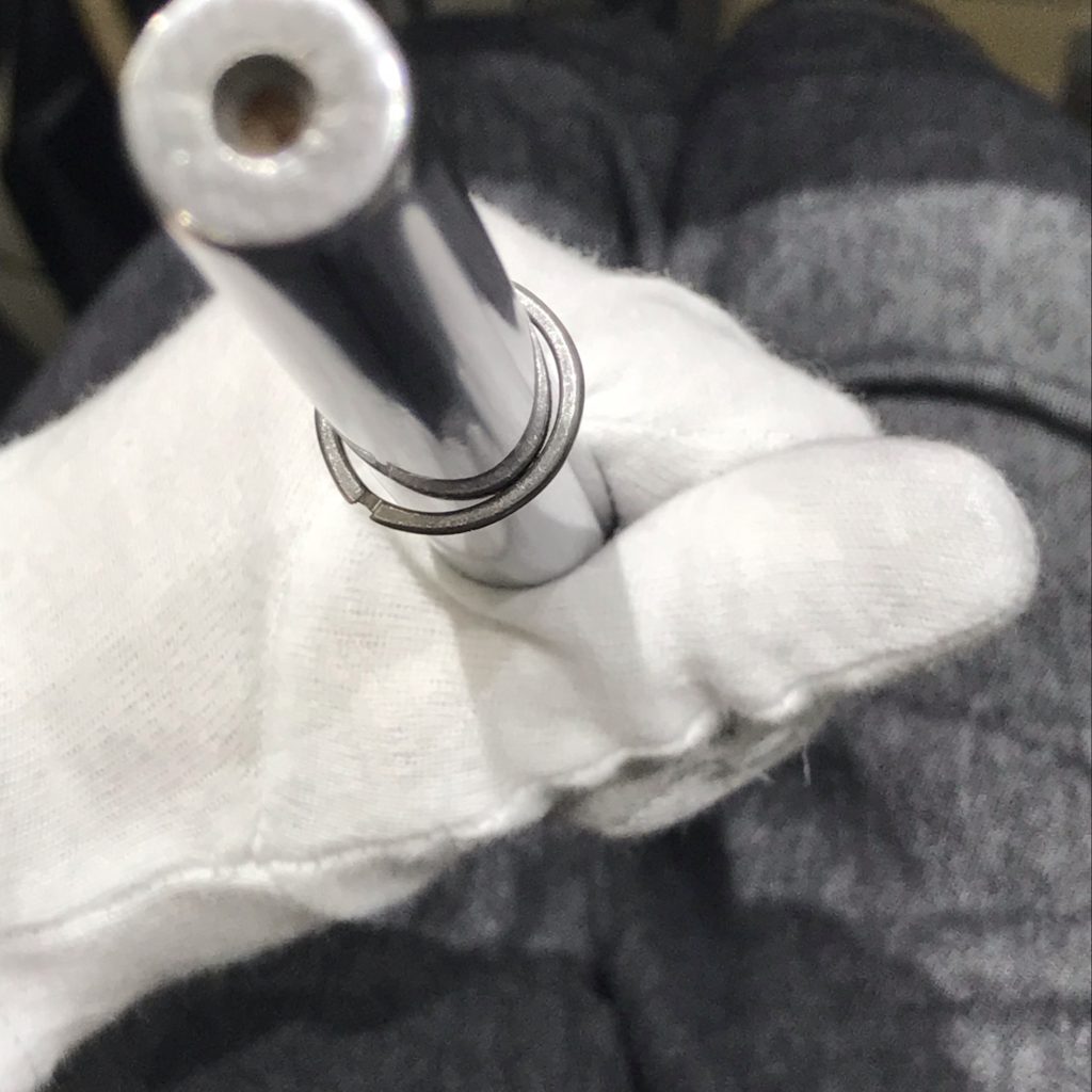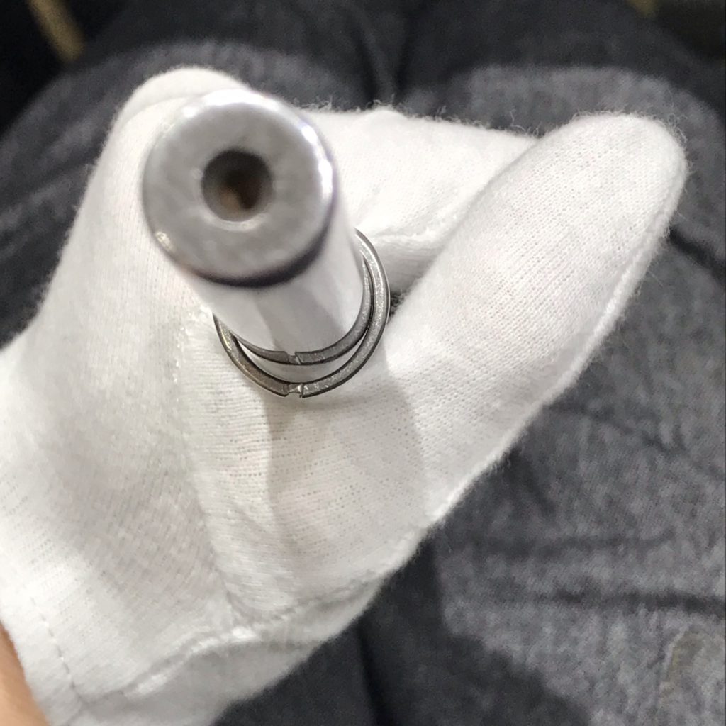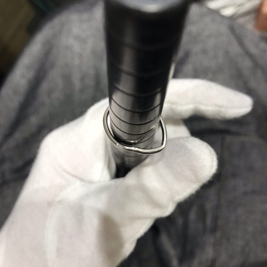 芯金に通した図です。指輪と芯金の間に大きな隙間が空いています。これだけ指輪が変形してしまっているということです。