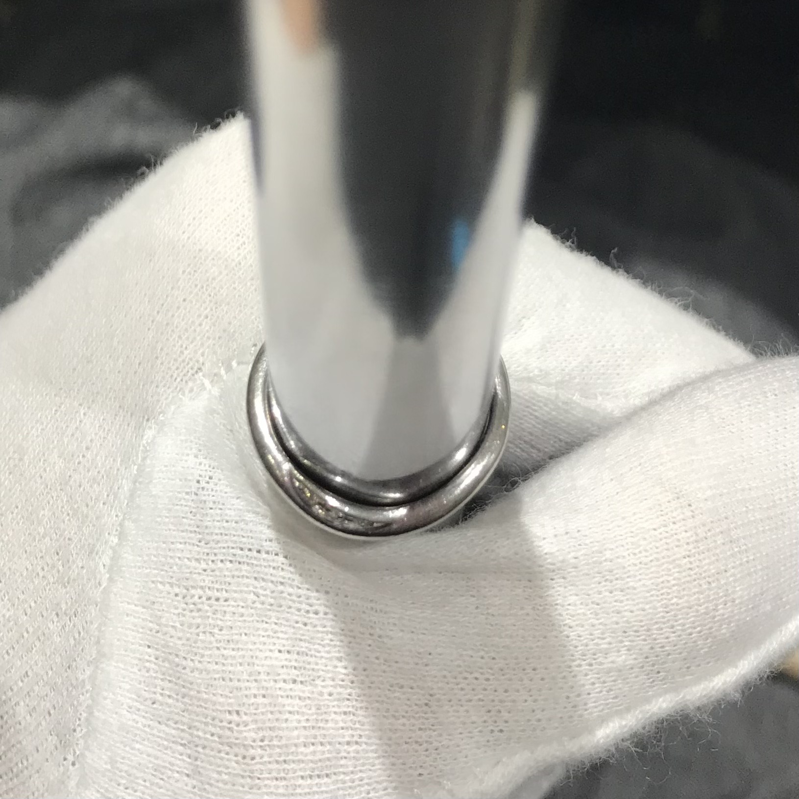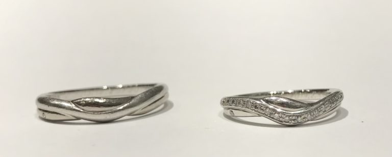 楕円形に潰れ、更に指輪の流れ自体も大きく変わってしまっています。元のデザインがストレートタイプなのかウェーブタイプなのかも判断が付きません。