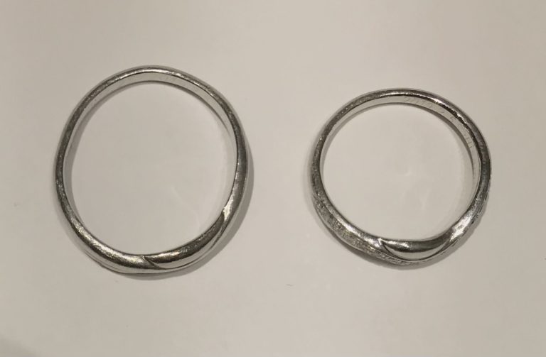 大きな変形をしてしまった指輪は正円に戻すとどうしてもサイズが大きくなってしまいます(大体0.25号アップ)