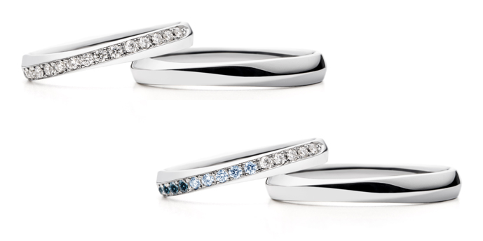 今回ご紹介致します商品は、この感染症で嫌な空気を普段の流れる日常へ感じて頂けるようにホワイトダイヤモンド/アイスブルーダイヤモンド/ブルーダイヤモンドにてアクセントを加えた商品をご覧下さいませ。