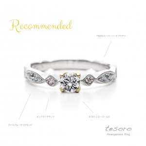 ピンクダイヤとアイスブルーダイヤの組み合わせでポップな印象に。