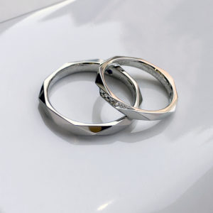 左側の平打ちリングは全ての指輪の基礎になる、平打ちリングです。