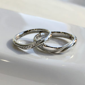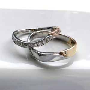 ウェーブと切り返しが美しいコンビネーションリングです。