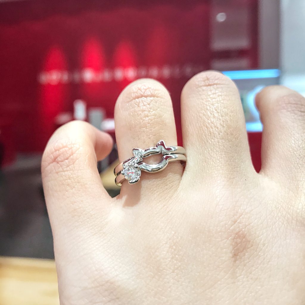 ▲ 結婚指輪。なんと、ネコ耳がついています。お問い合わせが多い人気デザインです。